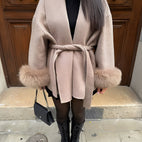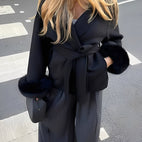Armani - Pardesiu lung elegant, stilat, cu blană pentru femei