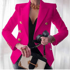 Acest blazer se remarcă prin detalii atent lucrate, cum ar fi cusăturile fine și nasturii strălucitori.