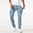 Reînnoiește-ți garderoba casual cu acest pantalon cargo slim pentru bărbați Clarence, creat pentru a îmbina confortul cu stilul. Fabricat dintr-un material elastic, asigură o libertate mare de mișcare, păstrând totodată o croială modernă și ajustată. Buzunarele sale numeroase oferă un spațiu practic pentru lucrurile tale esențiale, fiind ideal pentru un look streetwear sau pentru purtarea zilnică. Designul său versatil se potrivește cu ușurință cu adidași, ghete sau pantofi casual pentru o ținută aranjată dar relaxată. Perfect pentru ieșiri casual, excursii sau aventuri urbane, acest pantalon cargo îmbină perfect funcționalitatea cu moda.
