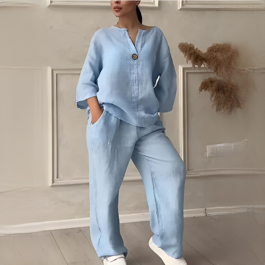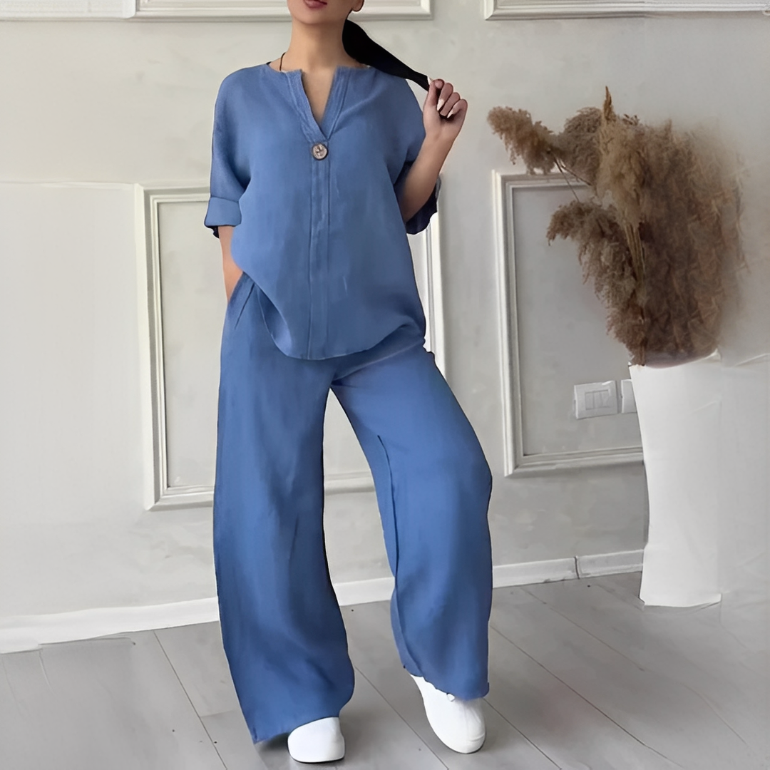 Modernizați-vă garderoba de vară cu acest ansamblu confortabil și elegant!