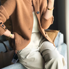 Textura fin tricotată a țesăturii conferă cardiganului adâncime și eleganță.