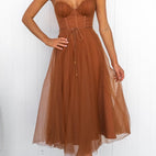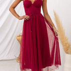 Descoperiți eleganța atemporală cu rochia maxi pentru femei - Rochie elegantă din șifon fluid - Fără mâneci - Decolteu rotund de la Couture-Moda. Proiectată pentru rafinament, această rochie uimitoare impresionează printr-un material ușor de șifon, un strat grațios de tul și o croială fără mâneci care flatează.