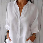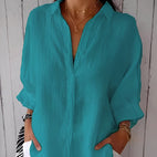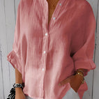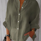REDUCERI DE IARNĂLena - Bluză din in pentru femei, cu decolteu în V