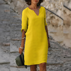 REDUCERI DE IARNĂLena - Bluză din in pentru femei, cu decolteu în V