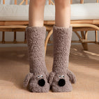 Șosetele Krystelle sunt fabricate din material plușat moale și gros, menținându-vă picioarele plăcut de calde. Motivul drăguț cu câine de desene animate adaugă un accent vesel, în timp ce talpa antiderapantă oferă o aderență sigură pe podelele netede. Ideal pentru acasă, relaxare pe canapea sau dimineți confortabile de iarnă. Aceste șosete de podea combină căldura, confortul și stilul jucăuș într-un singur produs.