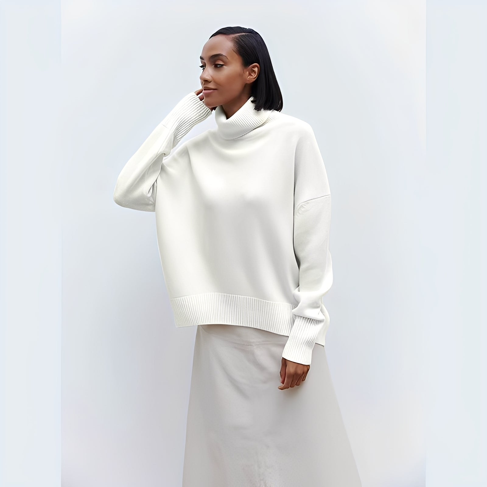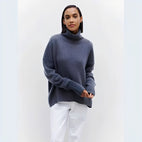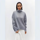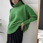 Îmbogățiți-vă garderoba de iarnă cu acest pulover cu guler rulat oversize pentru femei, călduros, elegant și versatil.