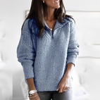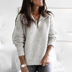 Rămâneți călduroasă și elegantă fără efort cu puloverul nostru cu fermoar, un articol esențial și de neînlocuit.