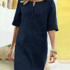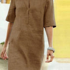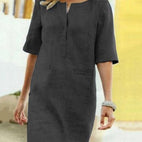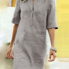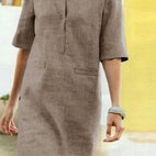 Rieke – Rochie dreaptă din in cu deschidere în V