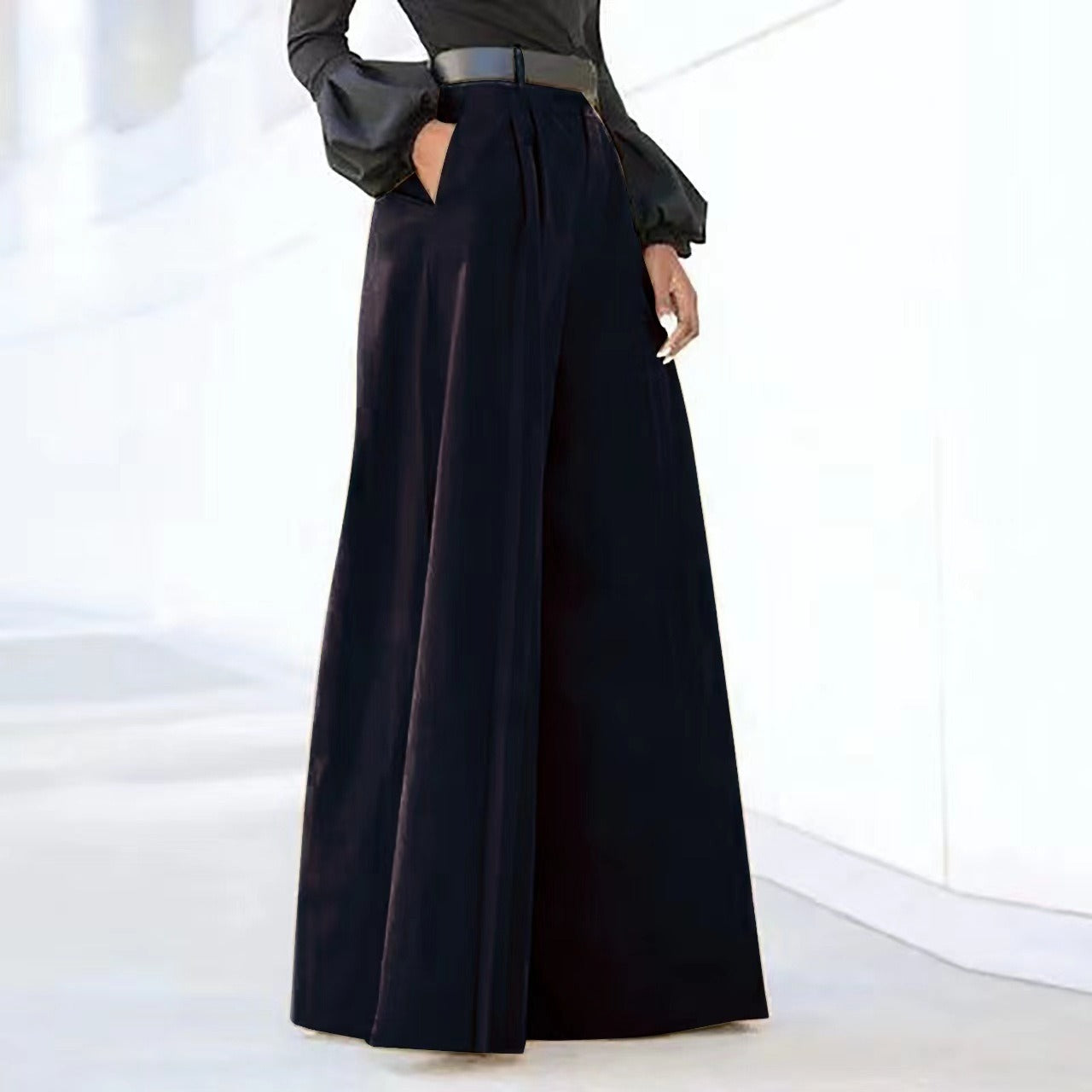 Rivka – Pantaloni cu Picior Larg cu Drapaj Moale