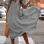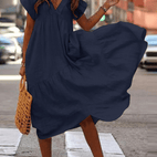 Sheanie - Rochie Casual Versatilă din Bumbac cu Guler în V